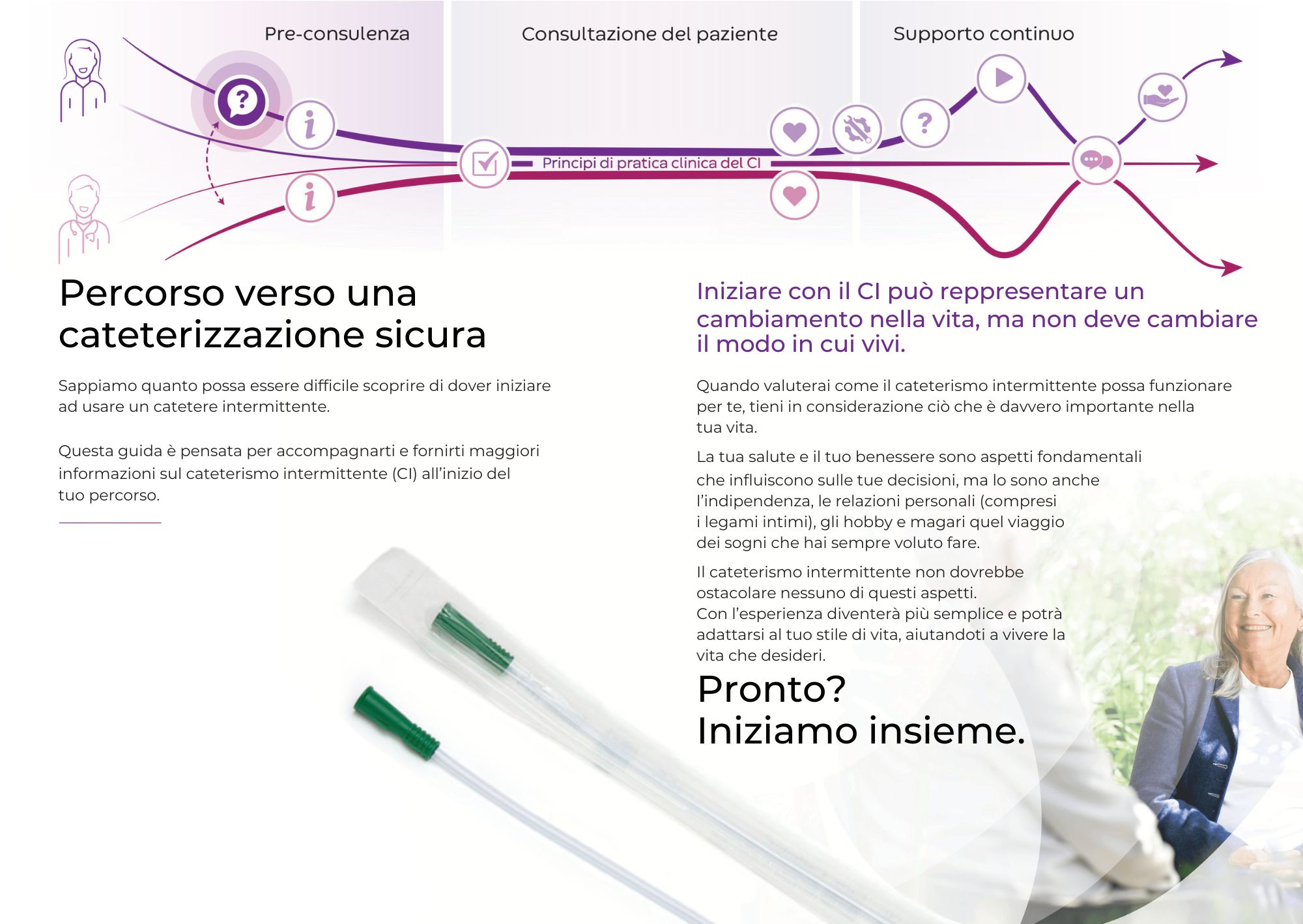 Sappiamo quanto possa essere difficile scoprire di dover iniziare a usare i cateteri intermittenti. Ecco perché abbiamo creato questa guida, per aiutarti a sentire più supportato sin dall'inizio del tuo percorso: l'utilizzo di cateteri intermittenti non deve cambiare il vostro modo di vivere.